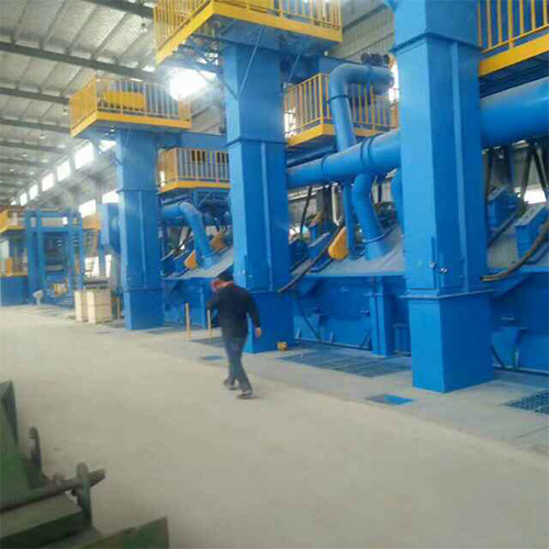 Это оборудование представляет собой высокоэффективную и непрерывную производственную линию предварительной обработки стальных листов. После предварительного нагрева стальной пластины роликом она поступает в камеру дробеструйной очистки. В ряде высокоэффективных дробеструйных устройств с различными координатными направлениями используются стальные гранулы для получения сильного удара и трения; оксидный слой, пятна ржавчины и грязь на поверхности быстро отпадают, а поверхность стали очищается и укрепляется. Во время процесса дробеструйной обработки рассеянная смесь гранул и пыли собирается под подъемником через воронку основной камеры и продольный шнековый транспортер; затем она поднимается в сепаратор над машиной для отделения гранул и пыли. Отделенный снаряд попадает в желоб сепаратора. Он транспортируется к каждому дробеструйному устройству по трубопроводам на месте для вторичной переработки.Пыль, образующаяся во время работы, транспортируется в систему пылеудаления через выхлопную трубу. Очищенный чистый воздух выбрасывается в атмосферу. Оборудование для удаления пыли улавливает и собирает гранулированную пыль.