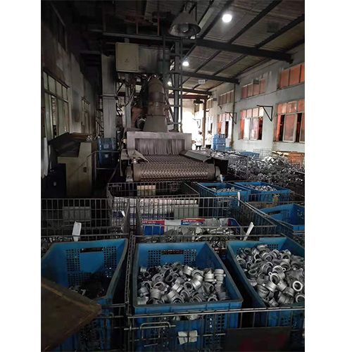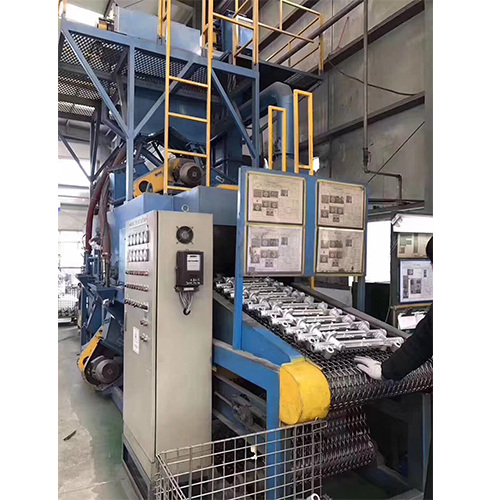 Очищенные детали проходят через зону дробеструйной обработки автоматически, непрерывно и непрерывно и подвергаются дробеструйной обработке в нескольких направлениях.