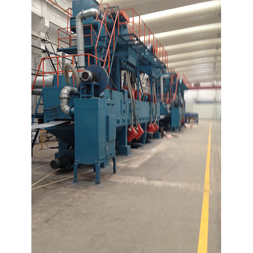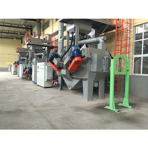Лента разматывается и вручную направляется в установку для дробеструйной очистки, через помещение для дробеструйной очистки, на намотку. Высокоэффективное центробежное дробеструйное устройство с подвесной стенкой используется для того, чтобы с высокой скоростью выбрасывать дробь на поверхность очищаемой заготовки, и заготовка соскабливается ударом для удаления ржавчины, оксидной пленки и других загрязнений с поверхности заготовки, а затем стальной проволочной щеткой и всасывающей трубкой. Эта установка может использоваться отдельно или в составе групповой линии.